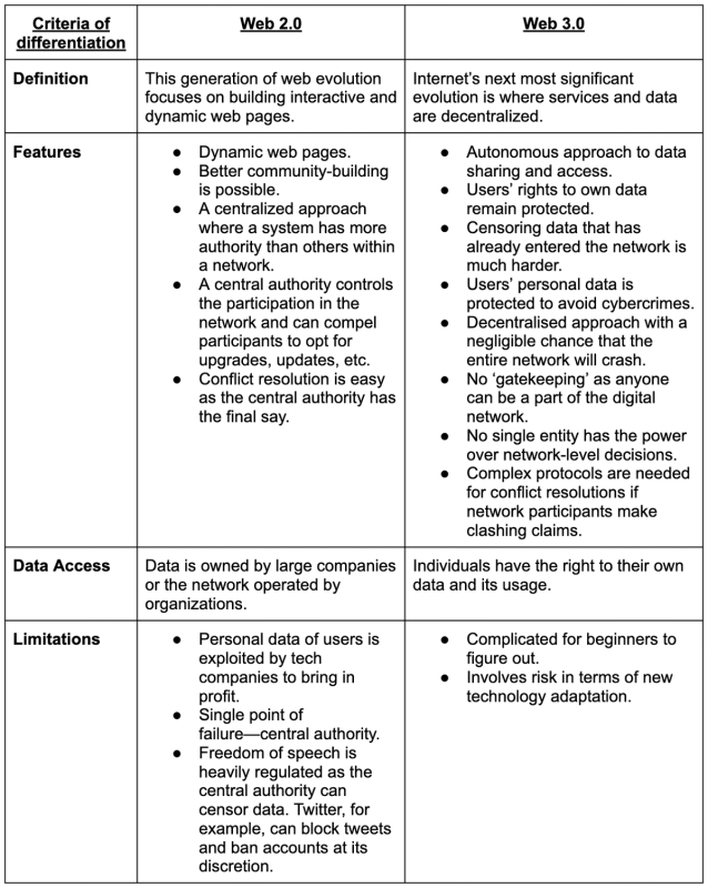 The web world has undergone significant changes in the past few decades. The hype surrounding blockchain technology has naturally led to the rise in curiosity about Web 3.0. In this article, we see how the Web has evolved since its inception, the new revolutionary idea that is Web3.0, and the differences between Web 2.0 and Web 3.0.