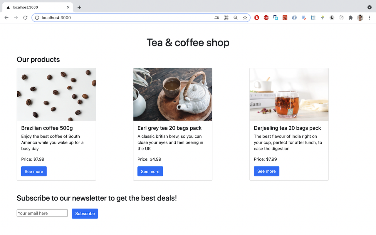 The app looks like this on the browser: